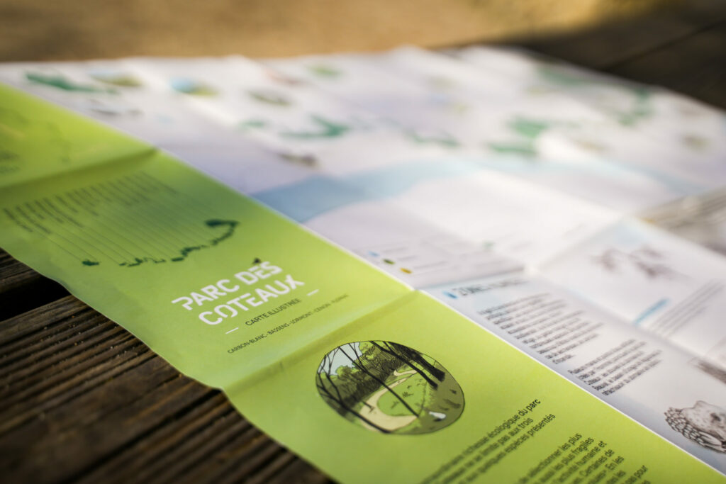 Ces derniers mois, nous avons accompagné le GPV Rive Droite sur la conception et la production de différents outils de médiation-communication pour répondre à une mission bien particulière : sensibiliser et informer les usagers sur le parc des Coteaux, sa biodiversité, ses usages et les pratiques (vertueuses) à adopter.