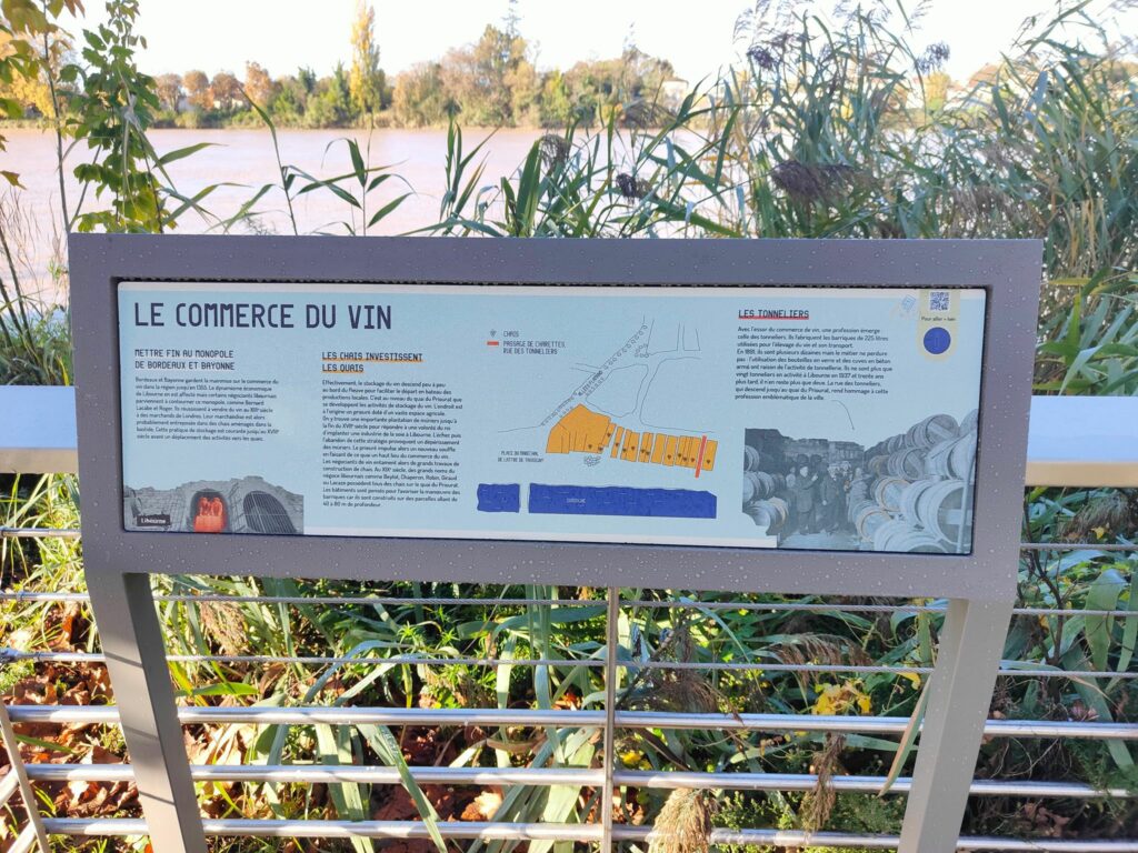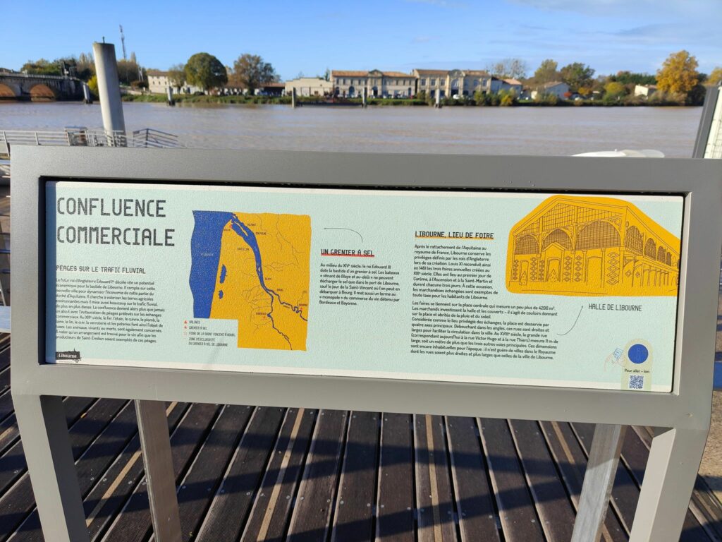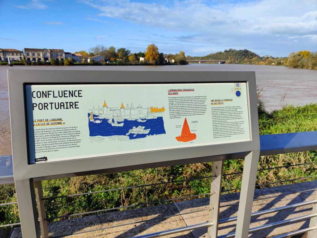 — La Ville de Libourne a souhaité mettre en place un parcours de signalétique sur ses quais. Ce parcours invite à découvrir l’histoire et la géographie à travers neuf panneaux connectés à une plateforme de médiation (via trois entrées : complément historique et architectural, jeux pour enfants, infos touristiques).